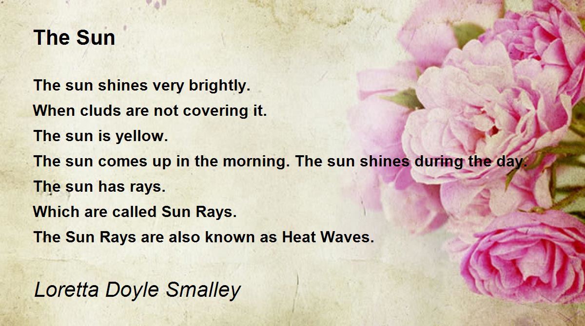 My First Poem The Sun Kunjukaryangal Short Poems About Sun Search short poems about sun by length. Keep reading to find a free download of these short, fun poems with original illustrations. Web sunshine is a vital element in nature that brings warmth and light to our world. Poems about sunshine celebrate its beauty and. The sun is not greedy, it is always ready to share its warmth and light.. Short Poems About Sun.